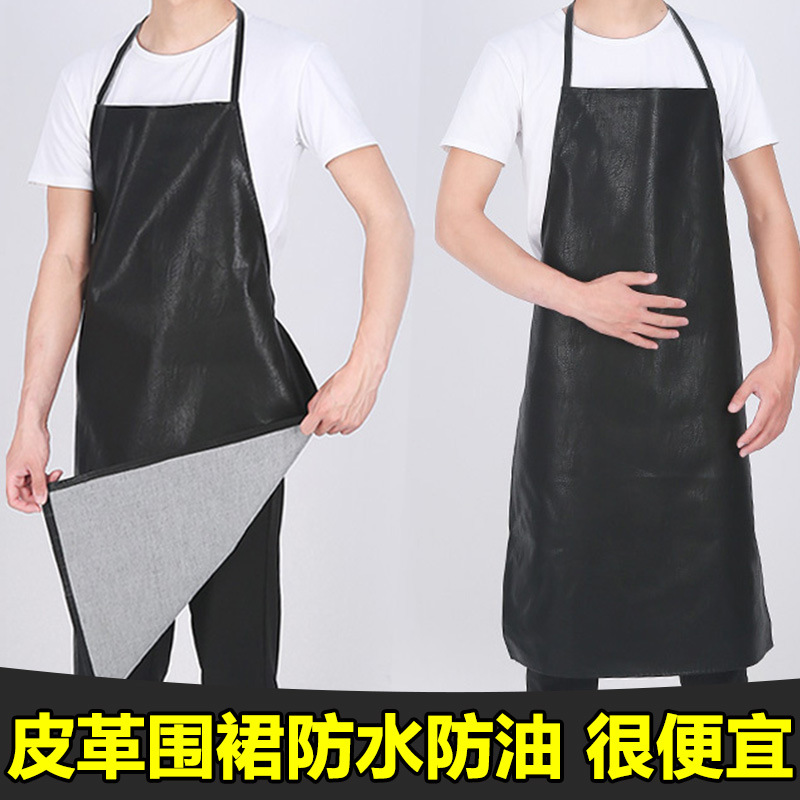 首掛けエプロン成人皮エプロン黒色ノースリーブエプロン厚手防油防水キッチン労働保護エプロン皮カバー