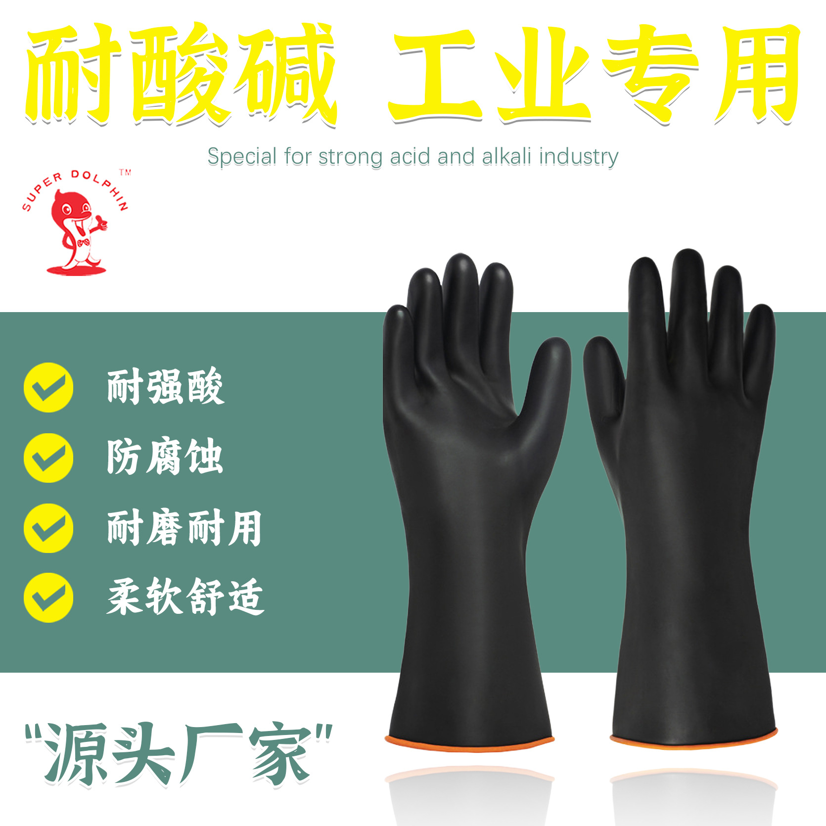 工場卸売り酸アルカリ労働保護手袋黒色滑り止めラテックス厚手工業手袋延長防護化手袋