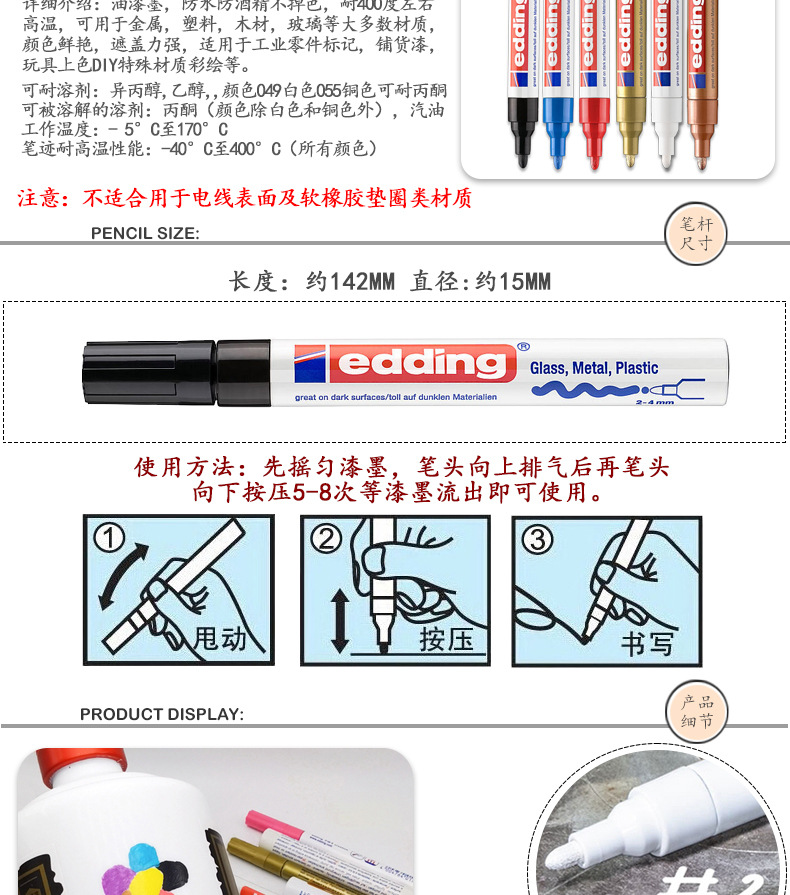 ドイツeddingエディ8750耐アルコール工業マーカー油性防水酸アルカリ耐高温ペンキペン