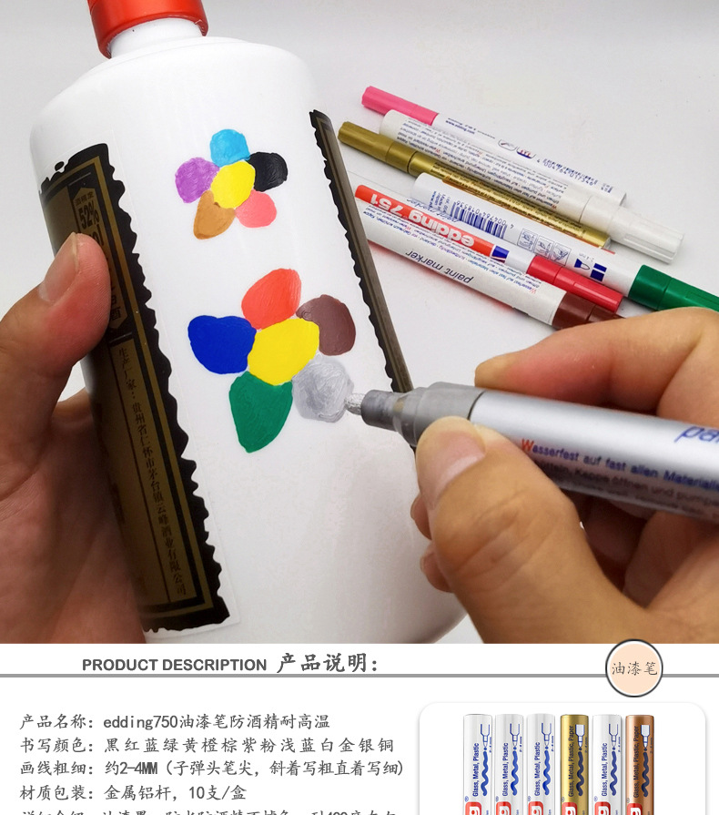ドイツ製エッディング751ペイントペン、スニーカーの落書き、車の塗装修理、工業用マーカー、耐油・防水、学生用ペン