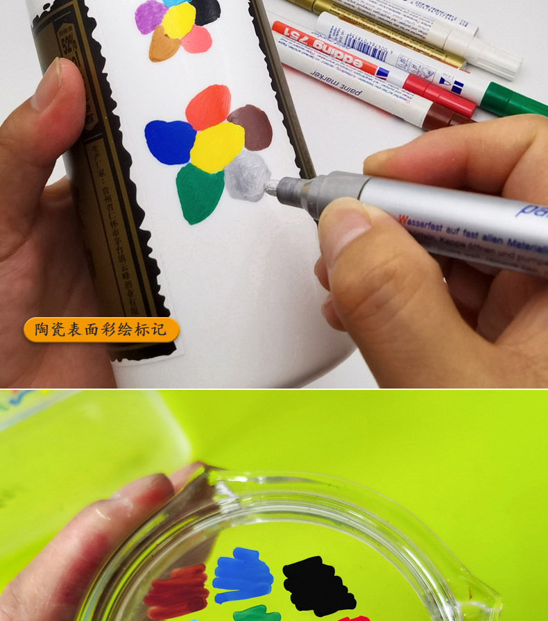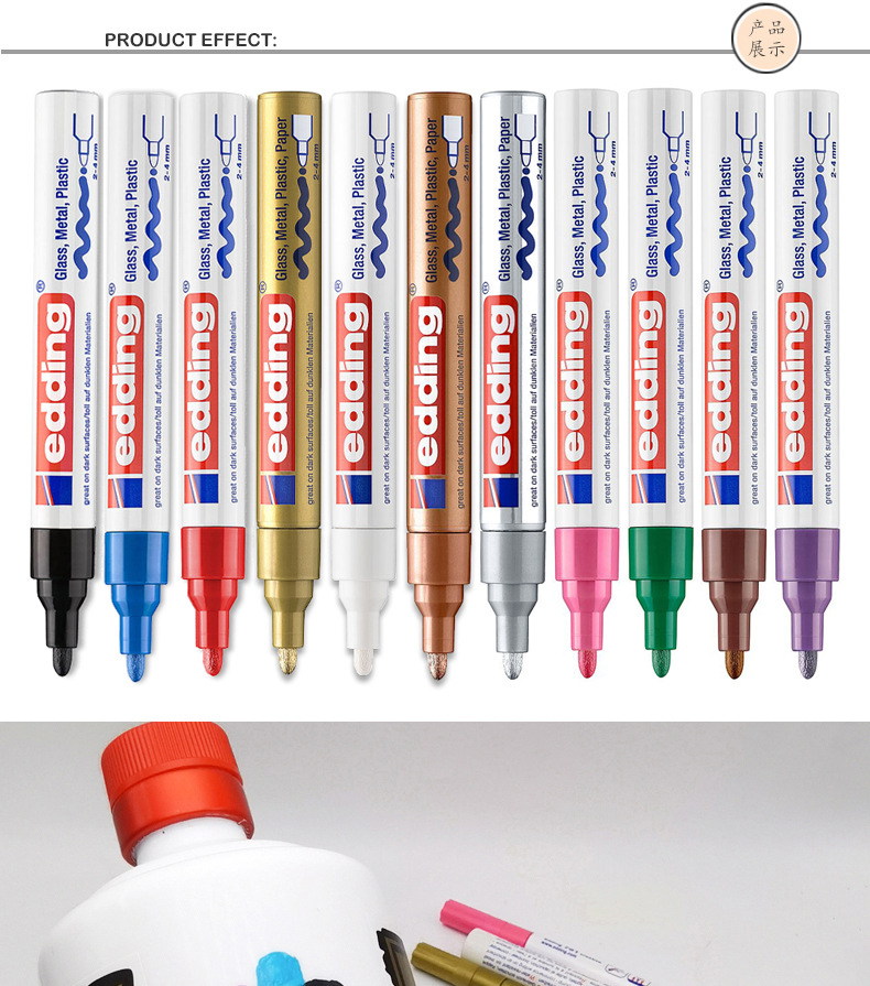 ドイツエディカラーペンキペン防水色落ちしない耐アルコール耐高温2mmペン金属黒色マーカーペン