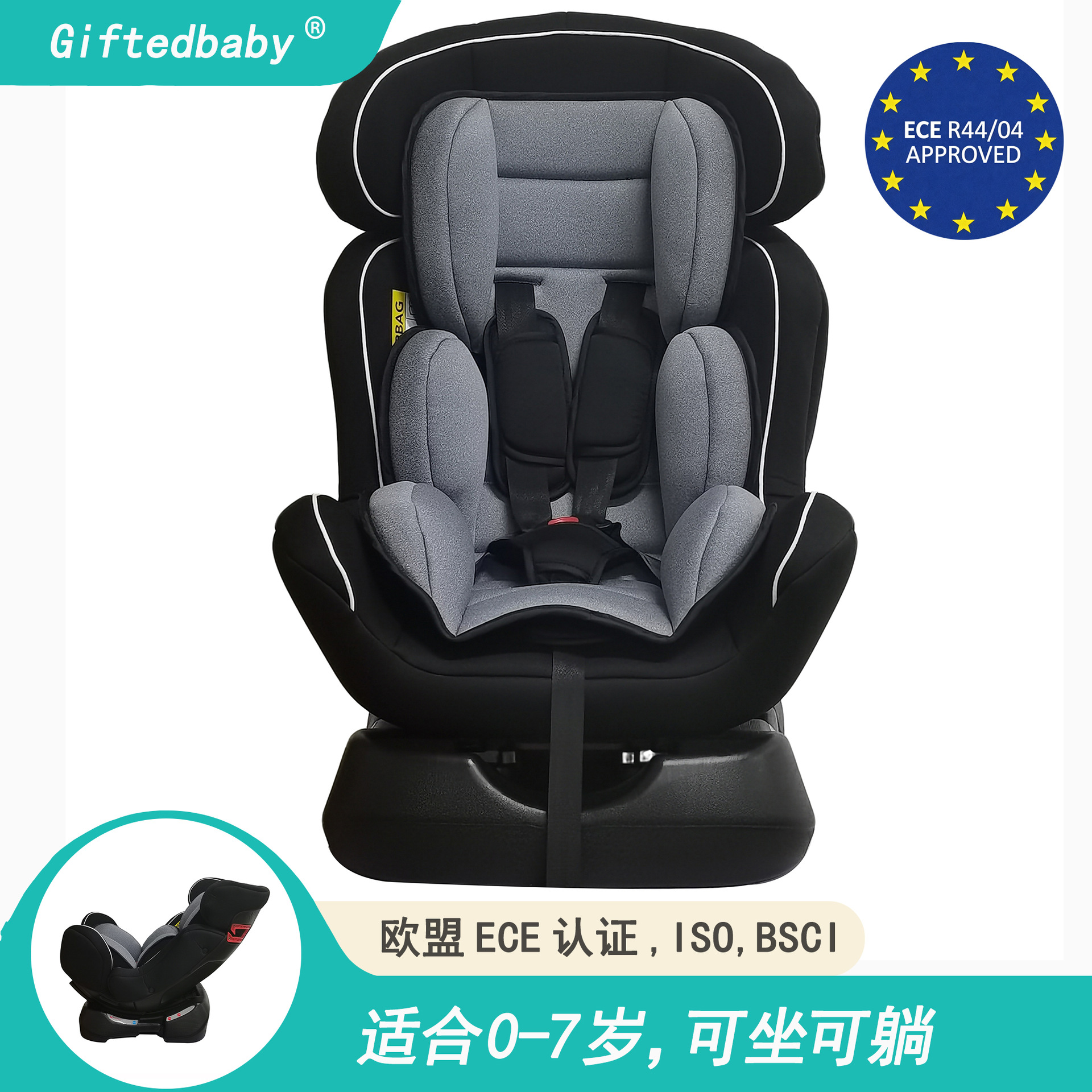 天才宝贝儿童汽车安全座椅通用车载便携式0-4岁宝宝座椅儿童用品