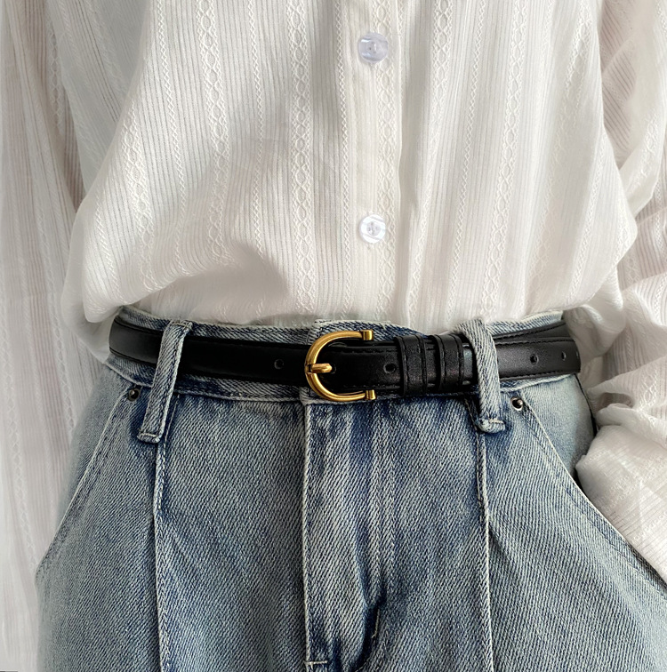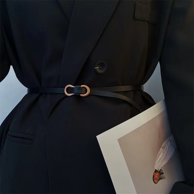 レトロ小ベルト女性ジーパンベルト女性夏シンプル百合細い飾りズボンベルト黒夏狭い