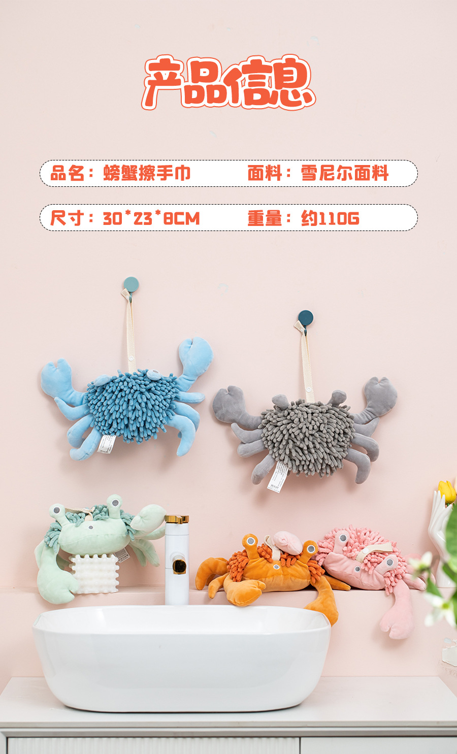 漫画カニシェニールハンドタオル人形多機能動物クリエイティブ吸収性ハンドタオルぬいぐるみ卸売