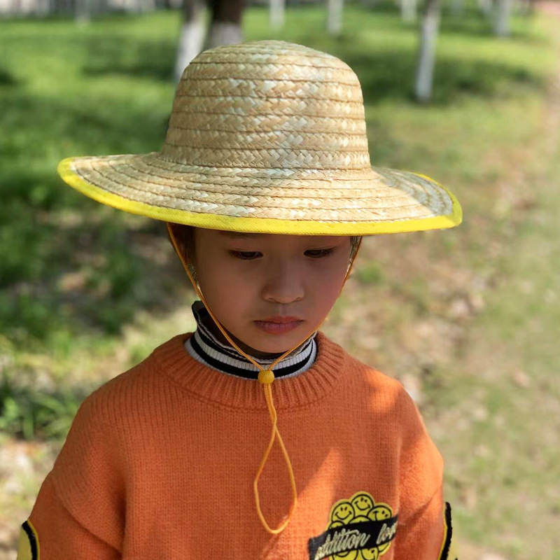 子供原色麦わら麦わら帽子春夏環境保護赤ちゃん男女子供ビーチ帽子日よけ学生日焼け止め帽子