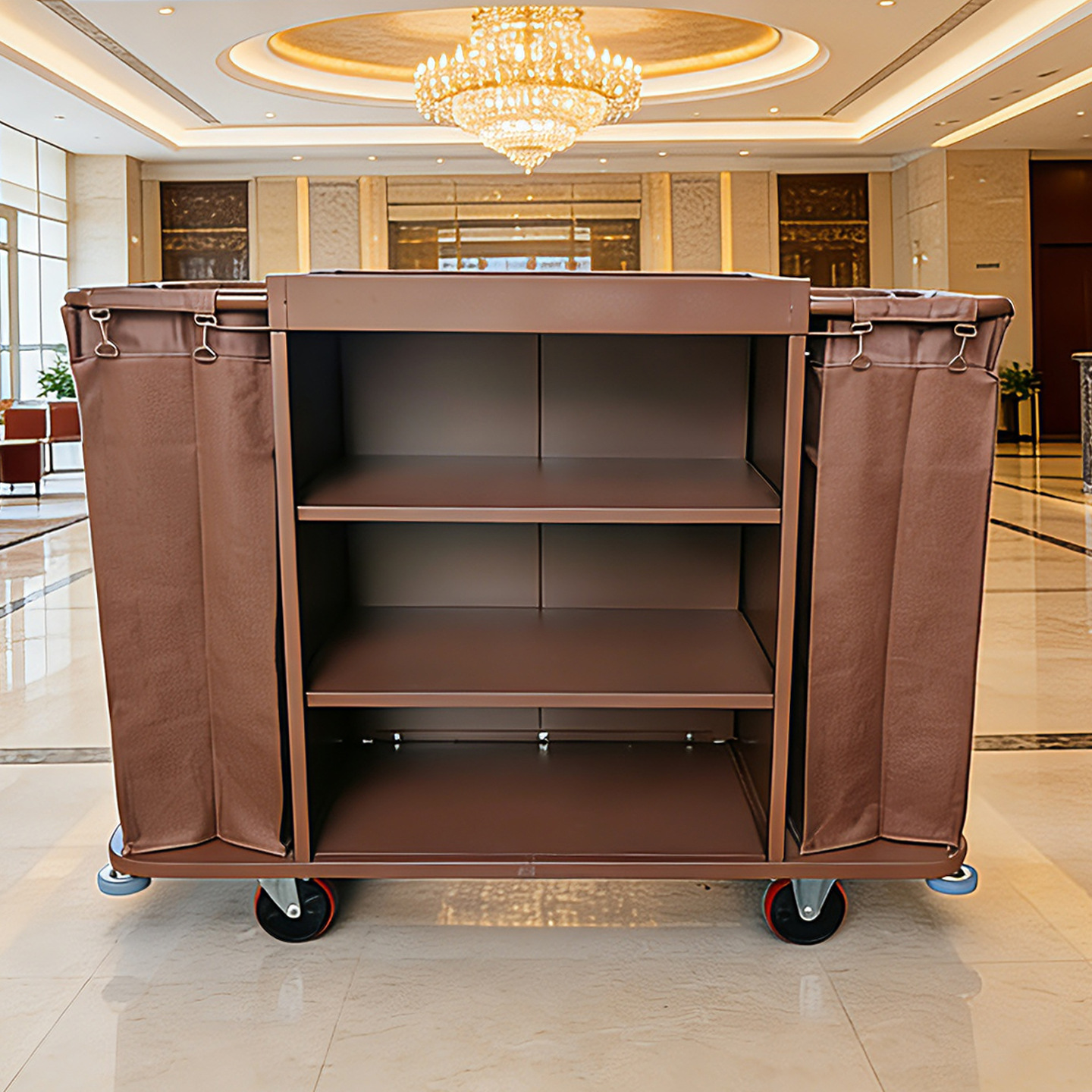 酒水车因为总是推来推去,会沾染上许多的灰尘,因此日常可用干净的抹布拍打上面的灰尘,为其除尘,不锈钢、钛金等金属材质的可先用干净的湿抹布擦拭一下,在用干抹布擦干即可。如果有一些印迹,可以用滑石粉清理,可以使用产品光亮如新。