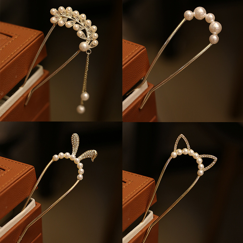 Xiaohongshu ファッションパール U 字型金属ヘアピンタッセルシンプルなレトロボールヘアピン女性の帽子バッチ