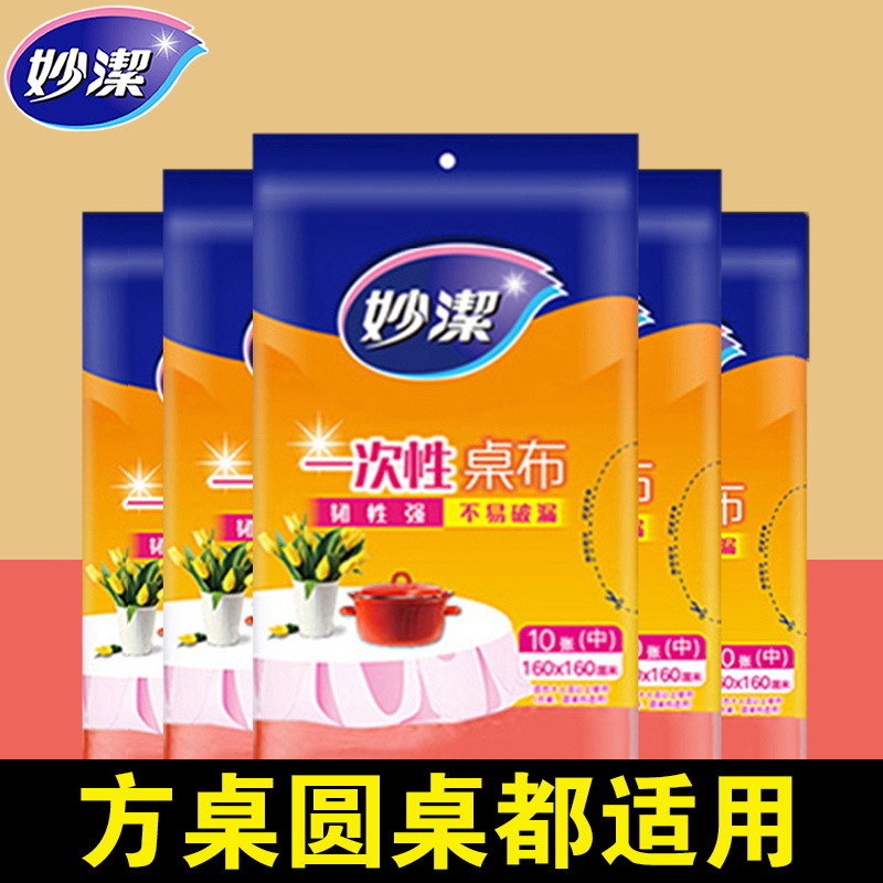 妙洁一次性桌布长方形圆桌塑料薄膜台布白色红色加厚结婚家用出游