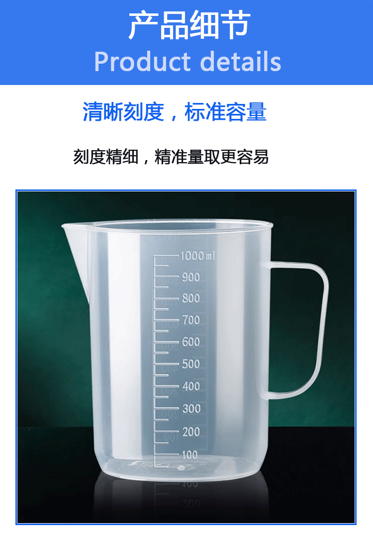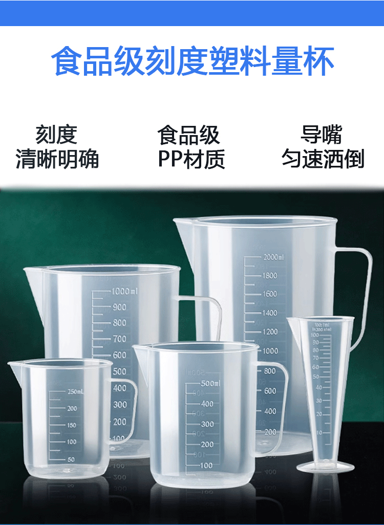 ハンドル付きプラスチック計量カップを厚くしたプラスチックビーカー50/100/250/500/1000ml/2l/5l計量カップ実験