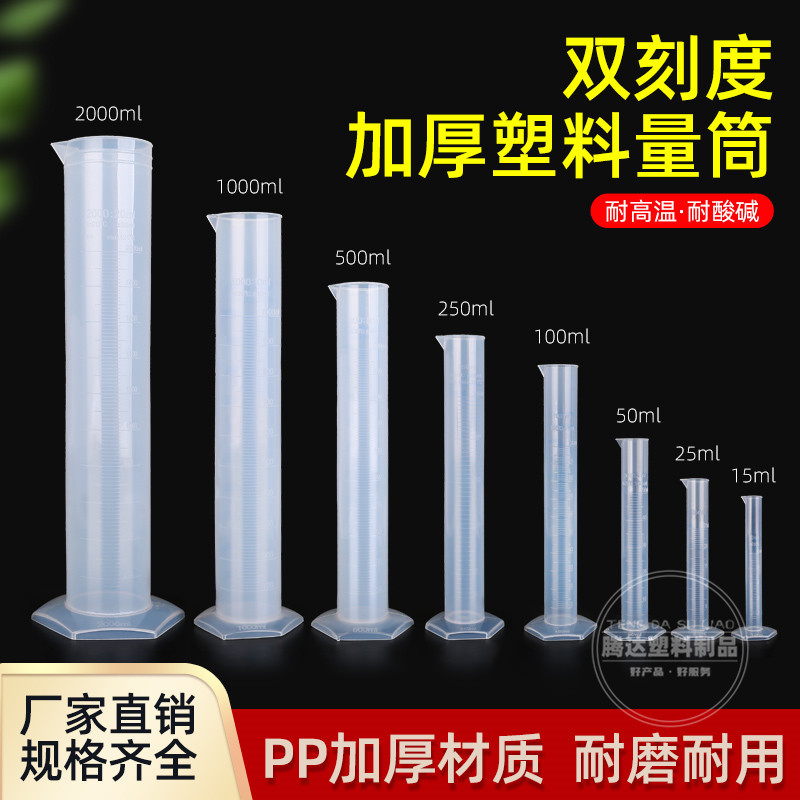 メーカー在庫卸売ブルースケールプラスチックメスシリンダー ml 計量カップ包装実験室メスシリンダー液体測定
