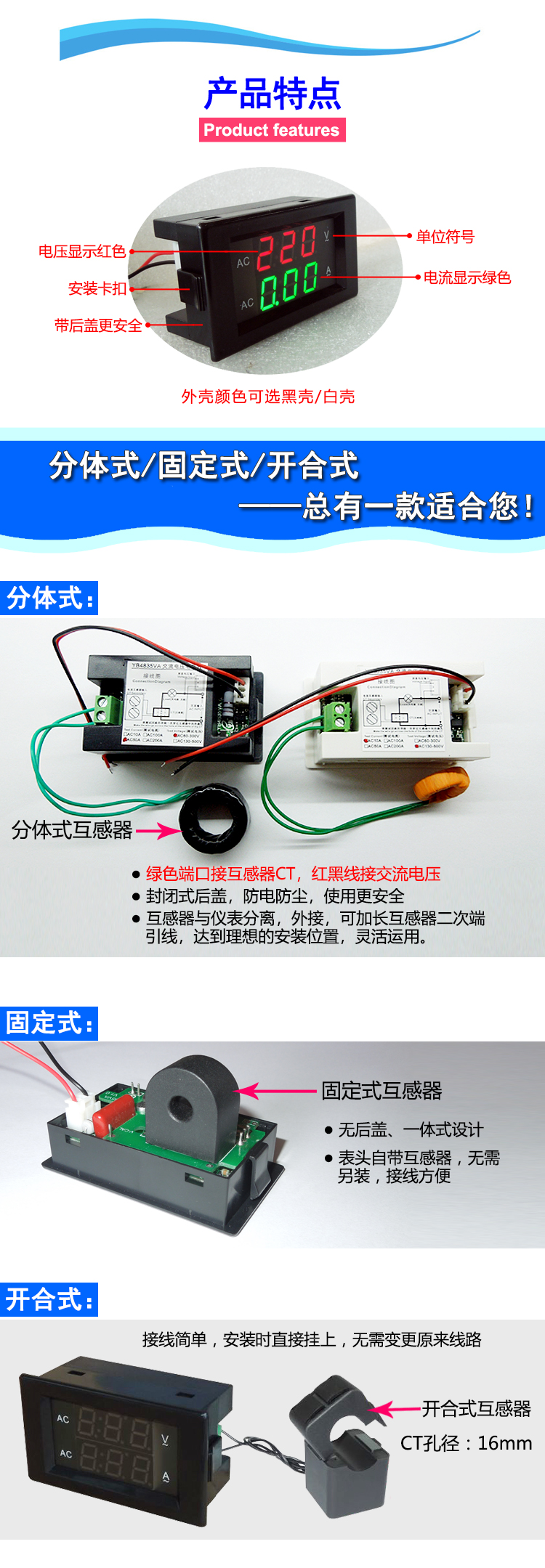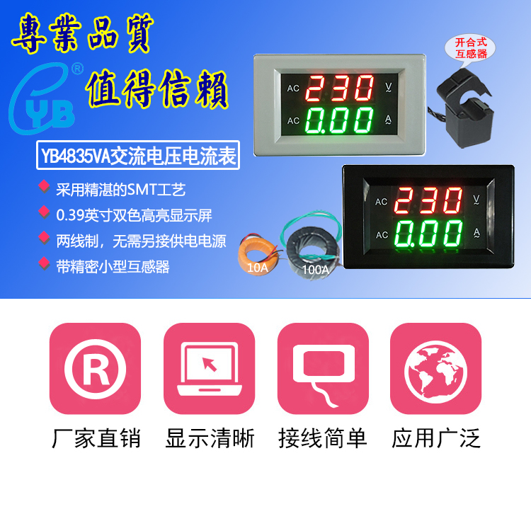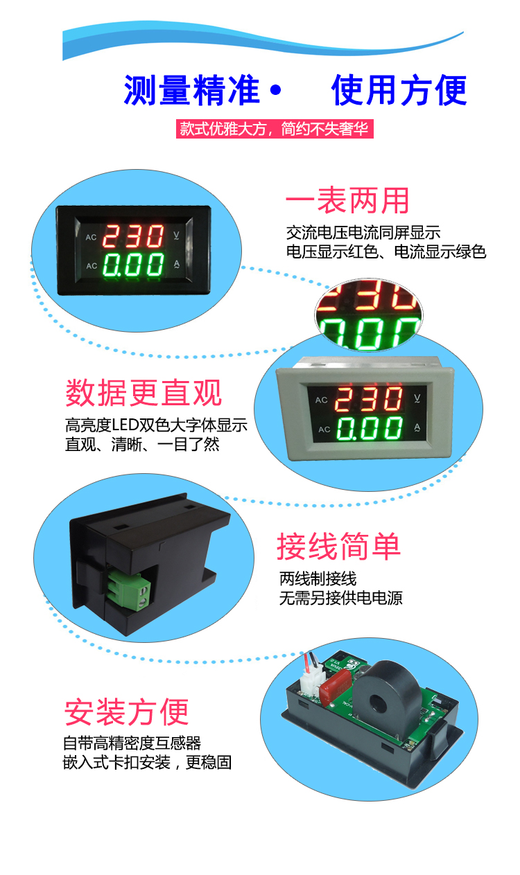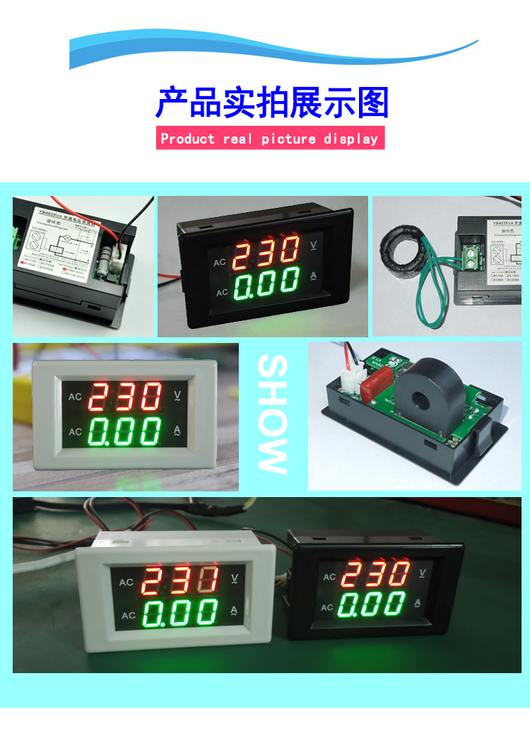 交流電圧計電流計交流デジタルディスプレイav/ac 2 in 1ダブルメーターac220v