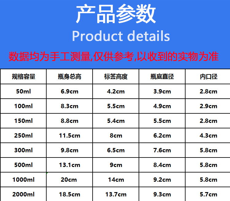 容量 50ml,100ml,150ml,200ml,250ml,300ml,500 ml,1000ml,2000ml