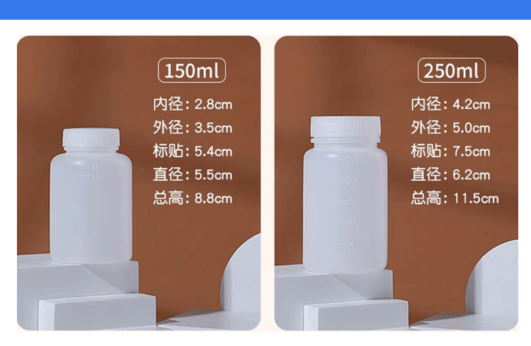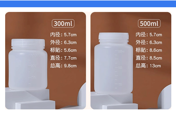 8-1000ml hdpe本色広口試薬瓶半透明内蓋付き瓶大口試薬瓶広口固体瓶