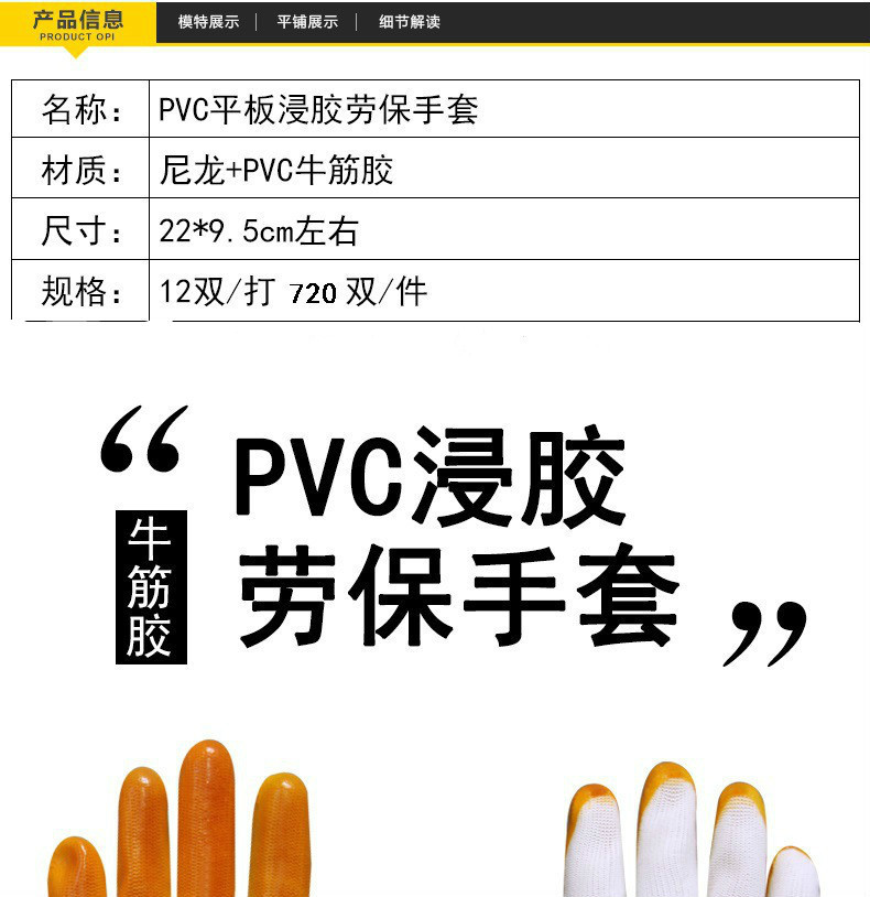 薄款PVC平挂浸胶中半挂大半挂涂胶单面胶尼龙线防护手套