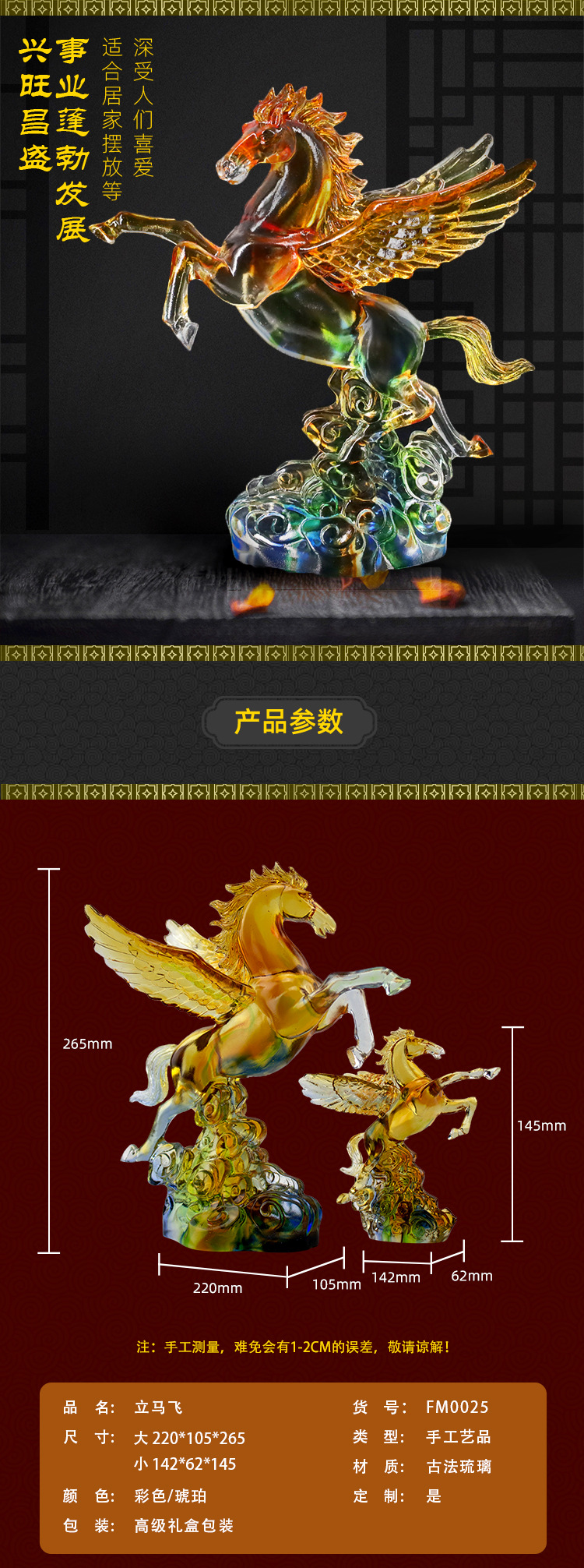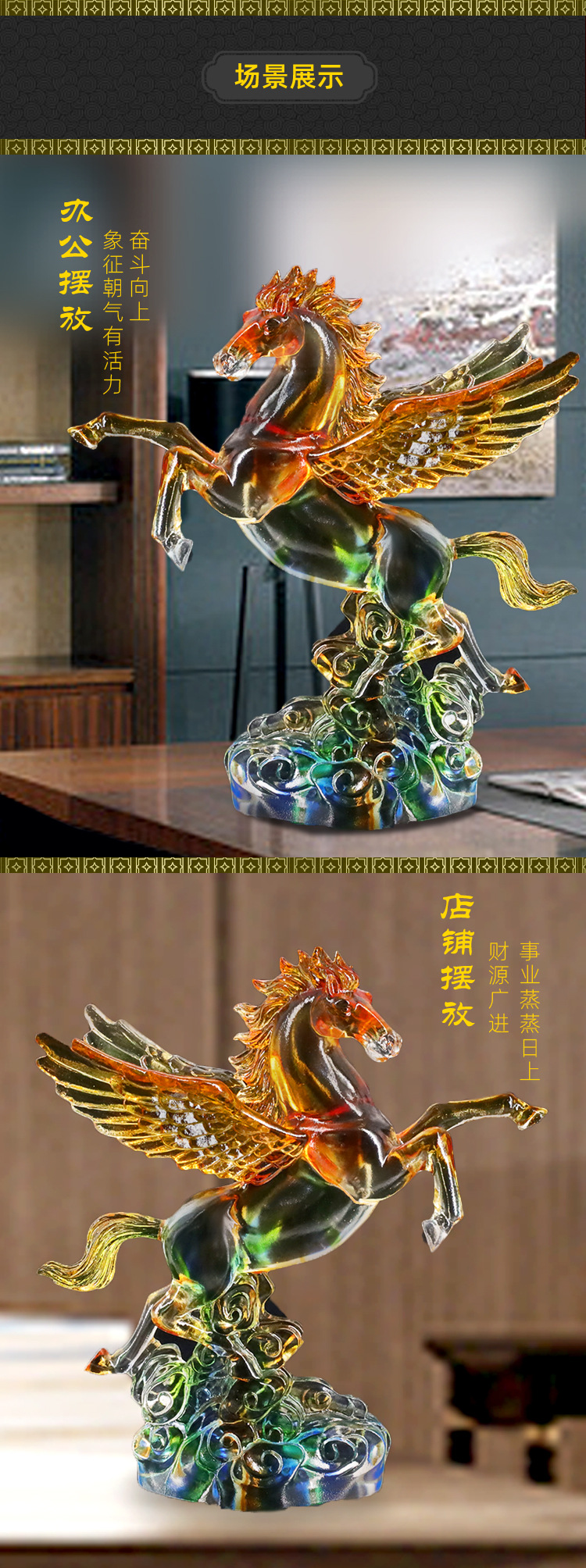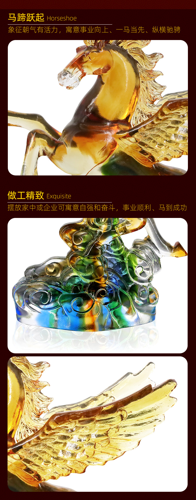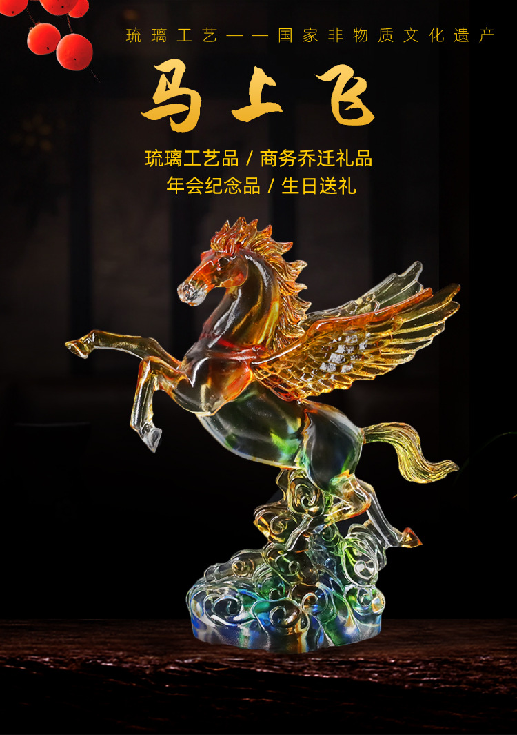 鋒明古法瑠璃飛馬生肖置物会社ビジネス記念プレゼント瑠璃馬は成功工芸品に着きます。