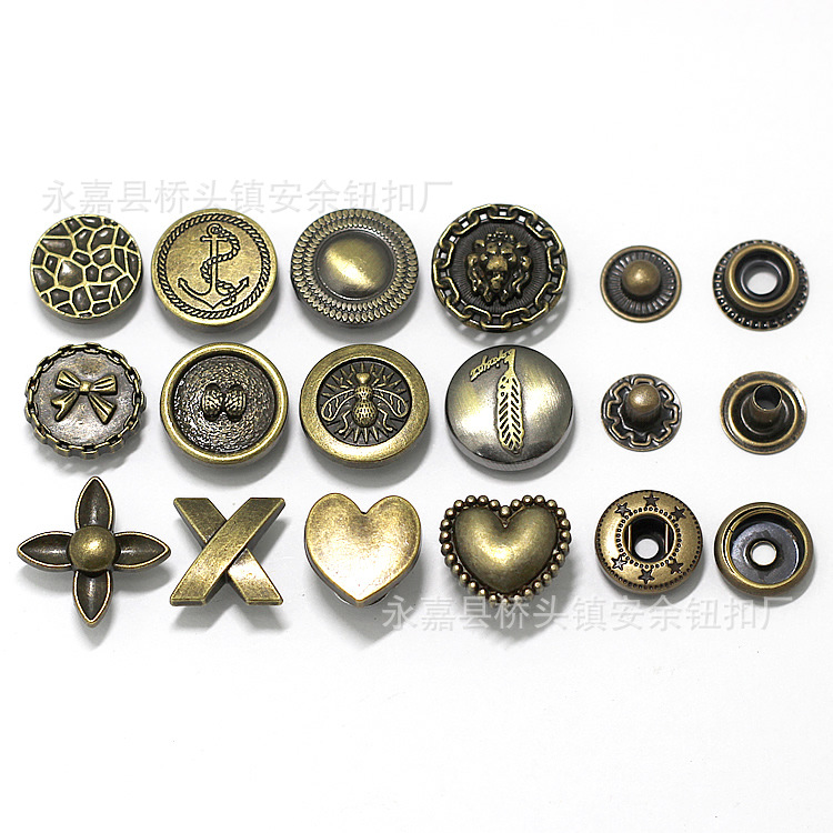 | 633/201型金属四合扣合金钮扣 | 钱包按扣复古花型四合扣暗扣 | 复古狮子头暗扣金属四合扣 |