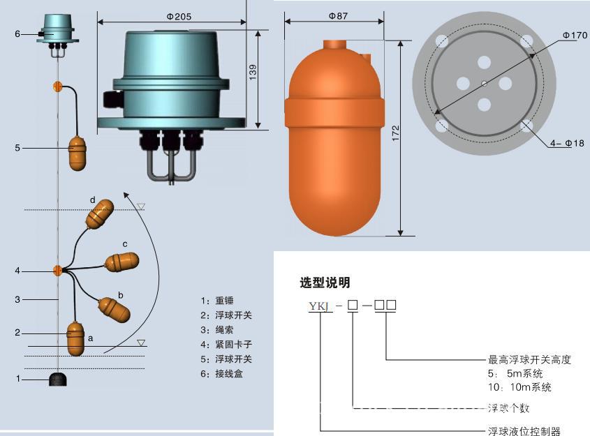 ■ 触点形式:一组接点(SPDT ) /每个浮球