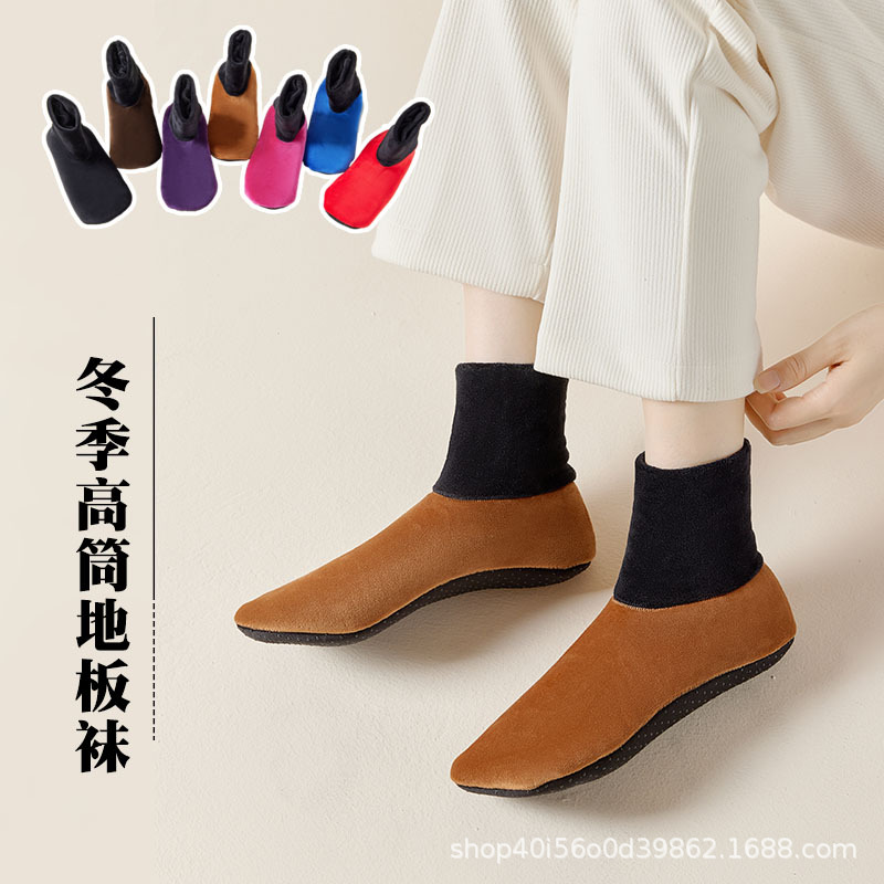 秋冬成人床靴滑り止め底にベルベットの厚い中筒靴下カバー男女室内保温早教室内靴靴下