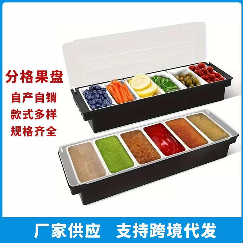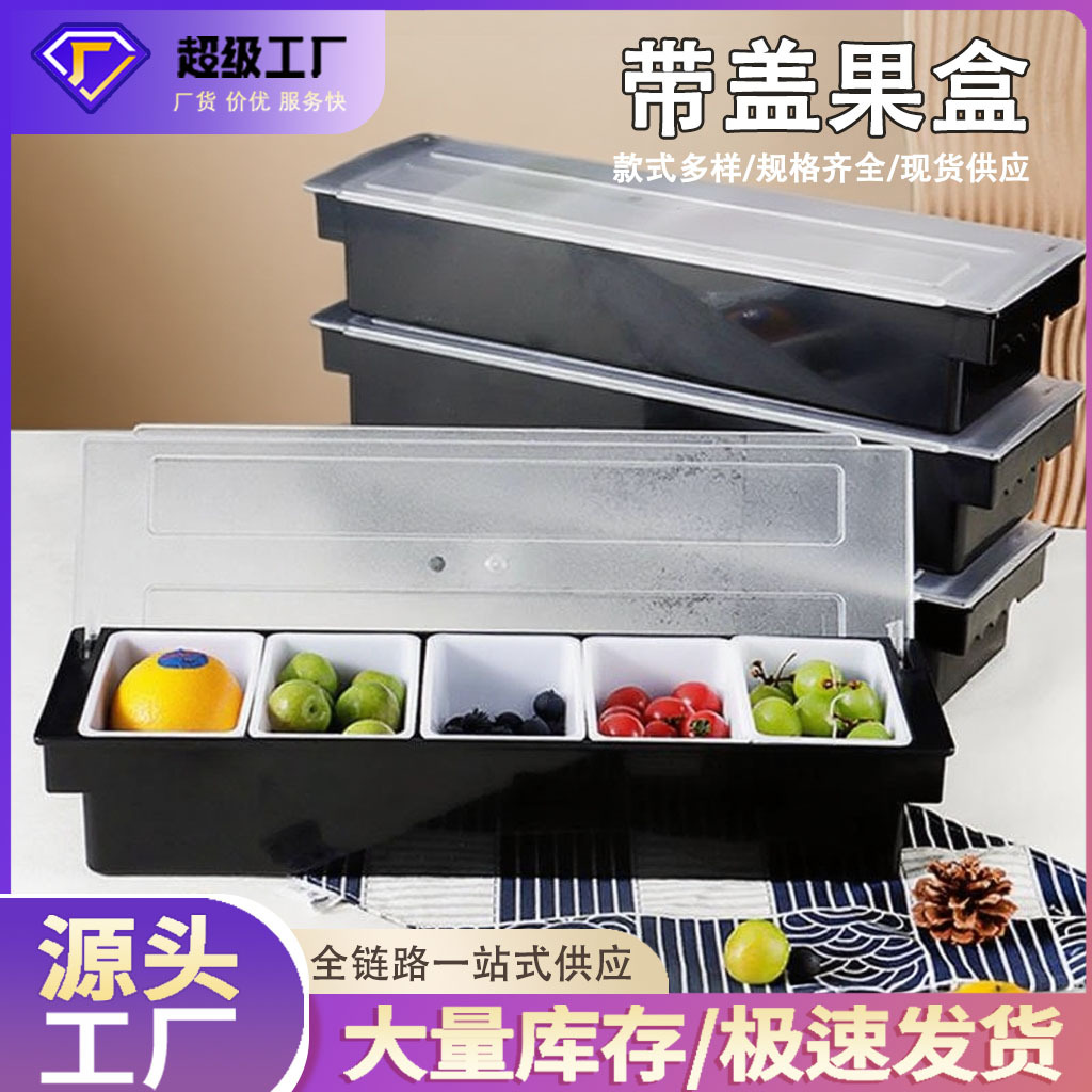 吧台调料盒水果保鲜盒奶茶店三格四格五格六格果盒厨房调味盒带盖
