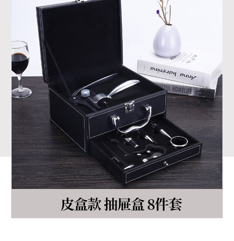 カラー 木の箱の項のアクリルの酒を注ぐ器,木箱には酒栓が2つついている,木箱タイプの鷹口デキャンタ真空引き酒栓,皮箱型アクリル酒器,皮箱タイプ2つの酒栓,皮の箱の金の真空引きの酒の栓,皮箱タイプの引き出し箱8点セット