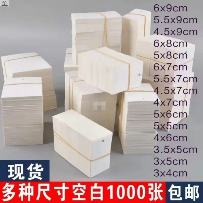该产品为现货空白吊牌,有多种尺寸,尺寸分别为4*9cm,3*5CM, 4*6CM, 6*6CM 以及2*3.3CM饰品纸卡;也可按您要求切不同尺寸,生产特种材料以及印刷您要求的纸卡(价格另算)。配套绳子另购,有问题可咨询客服!