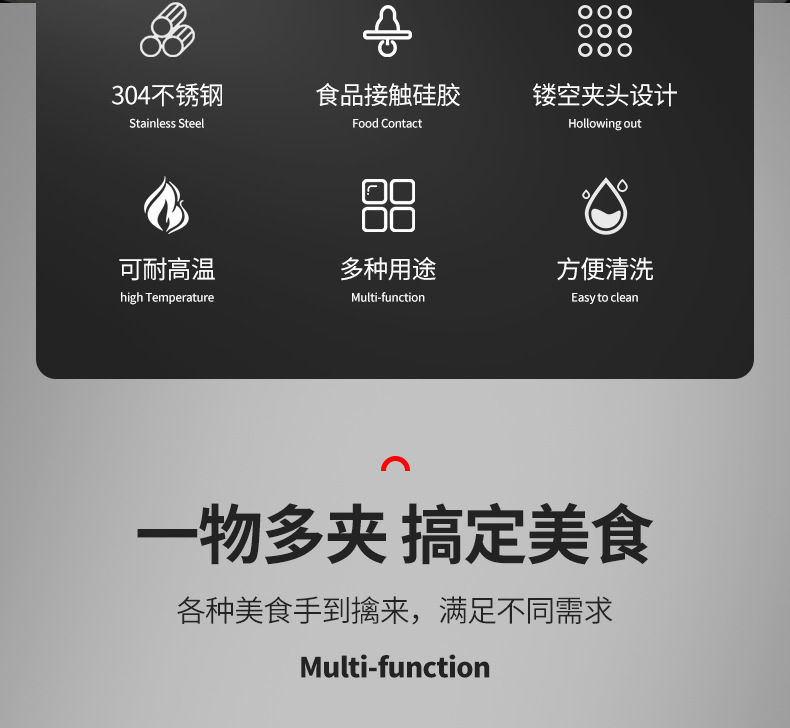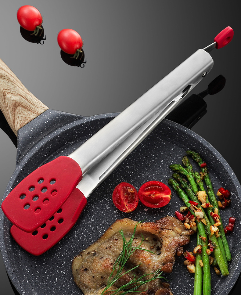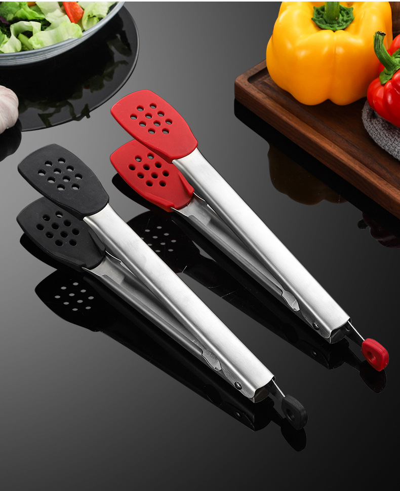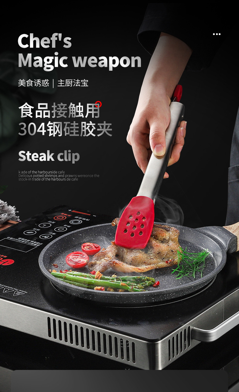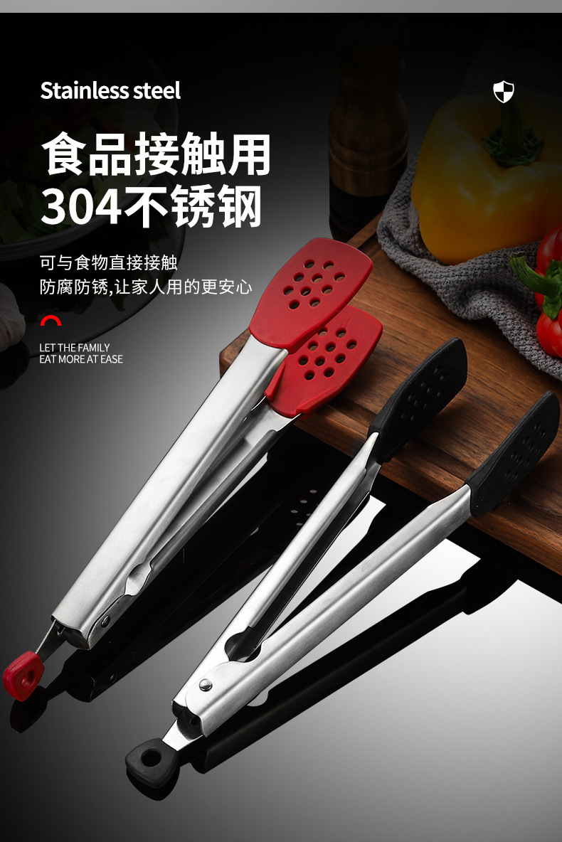 304食品級ステンレス砂光黒赤色シリカゲル食品クリップパンクリップバーベキュークリップ氷クリップ台所焙煎