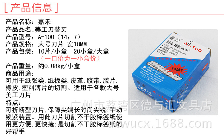 嘉禾JIA HE A-80 小号刀片 美工刀替刃