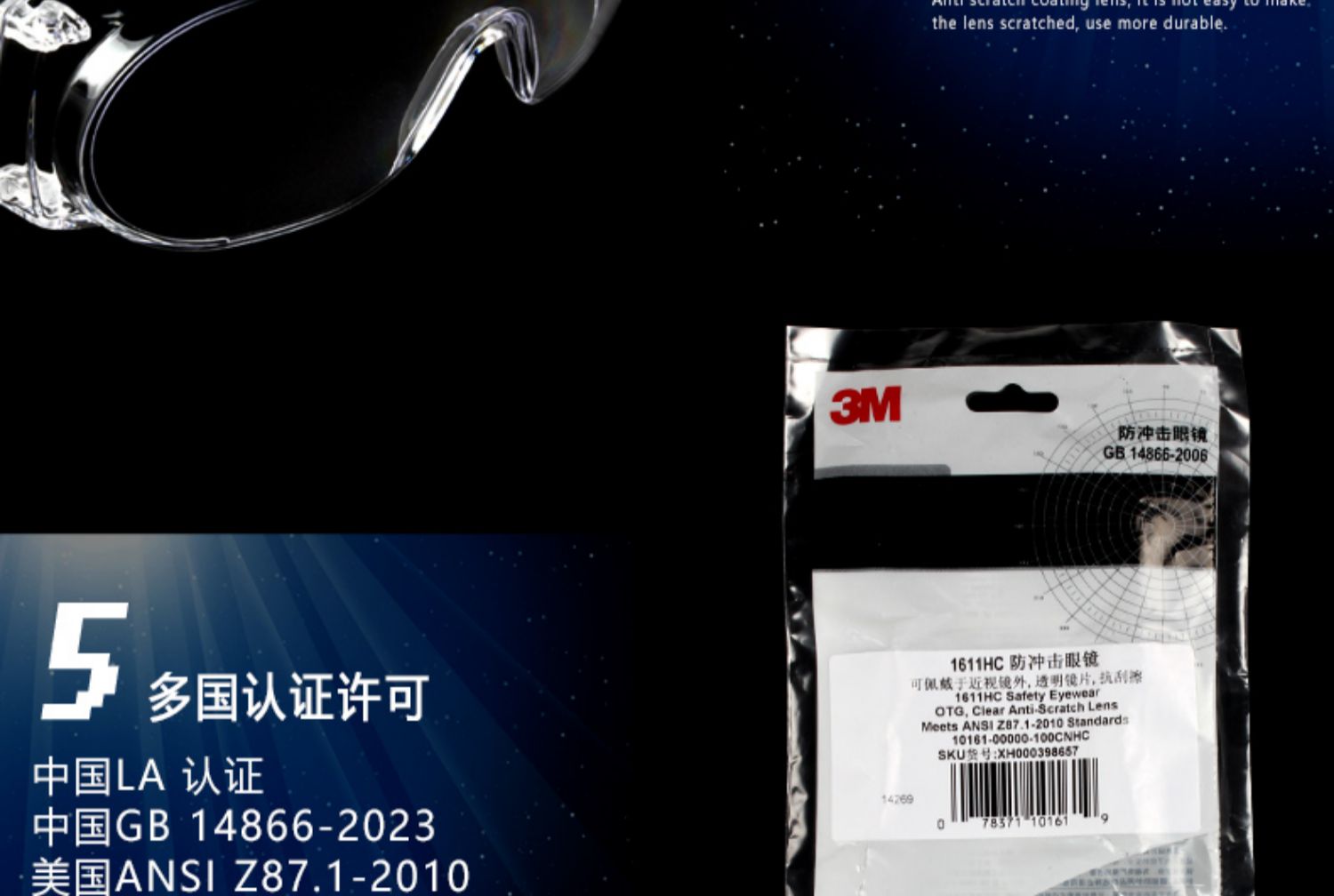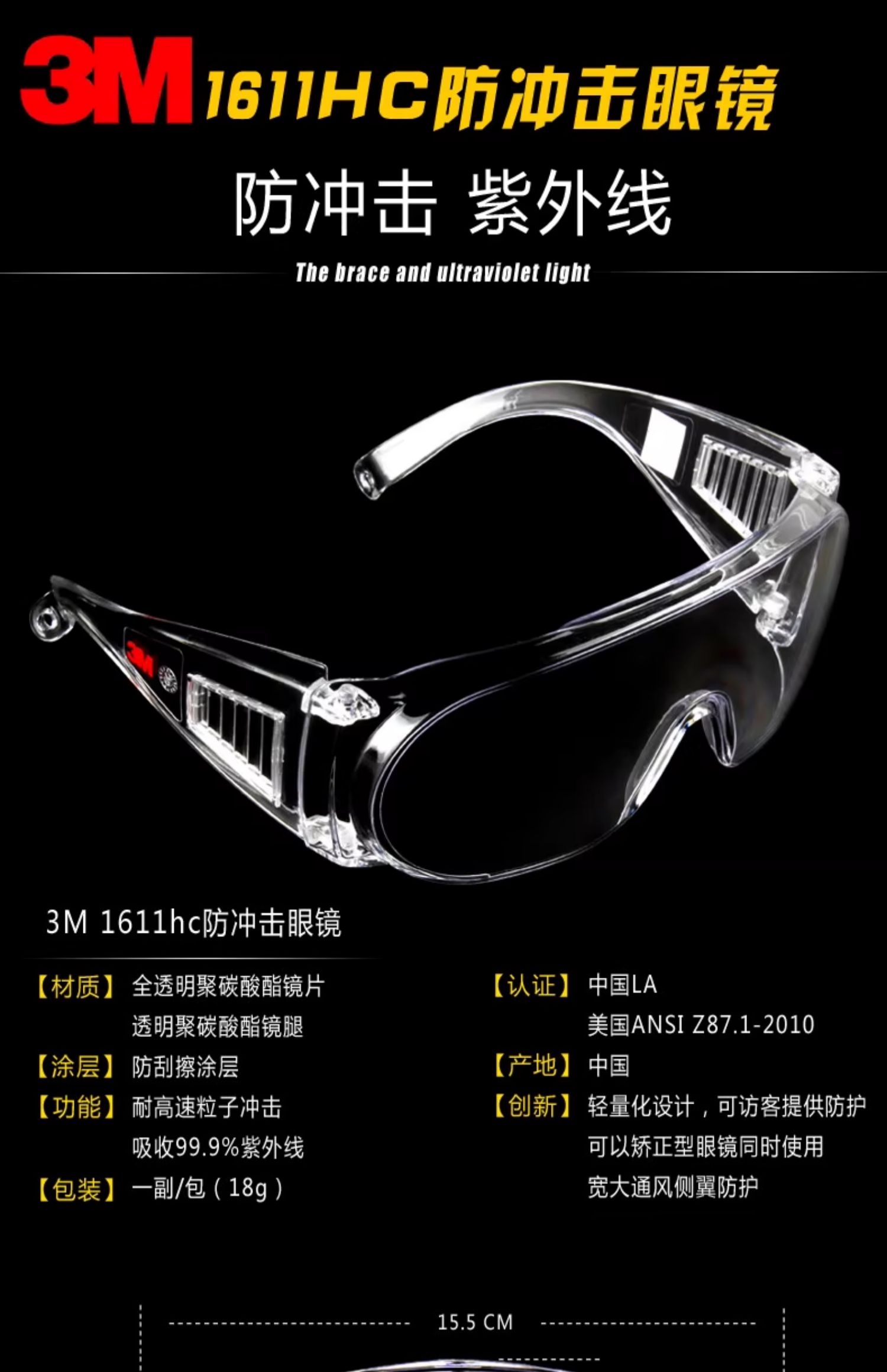 3mゴーグル1611hc透明防塵騎行保護メガネ防風砂防衝撃防曇防擦り男女