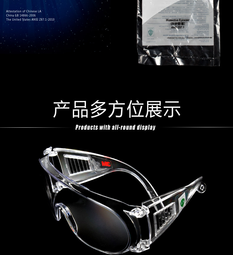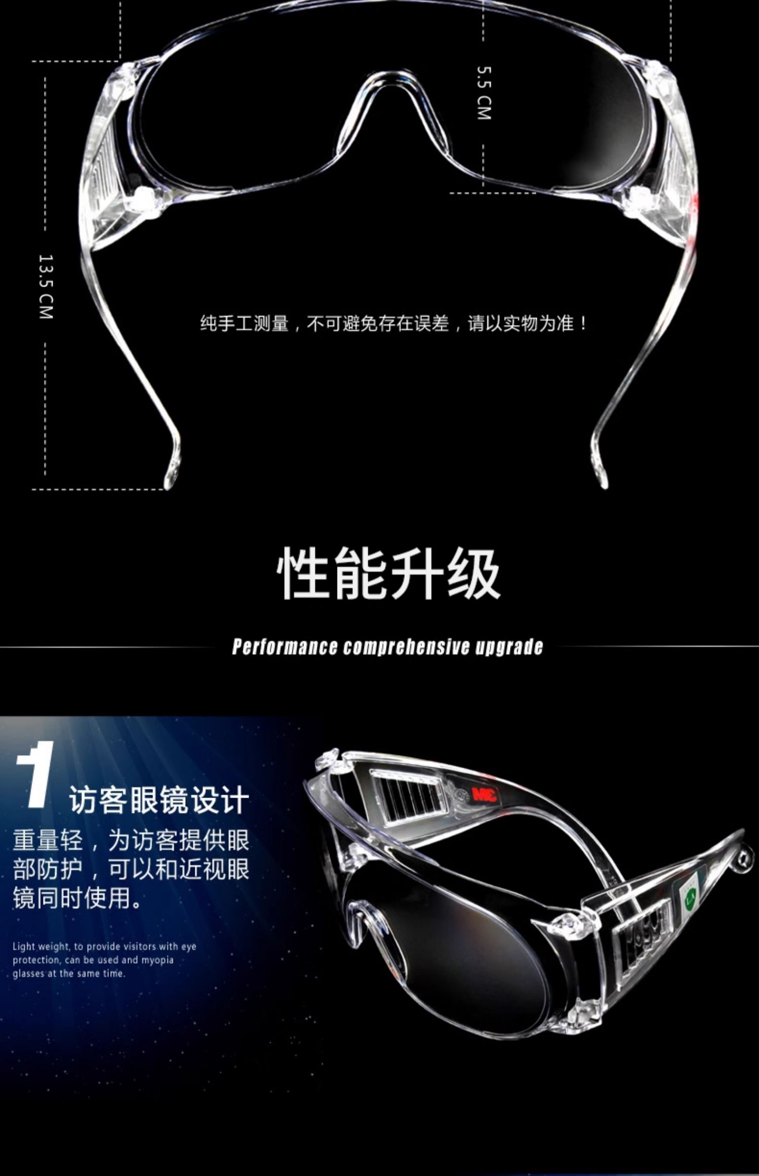 3mゴーグル防工作業磨き飛散自転車行防風砂ほこり男女透明労働保護平光眼鏡