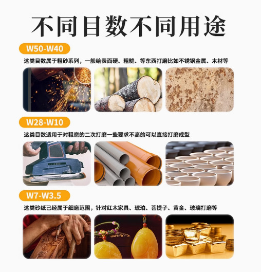 W28 (01#400目) W40 (0#320目) W50 (1#240目)