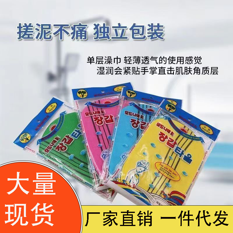 韩文标:面料为植物纤维150D细砂 搓泥效果好,皮肤无伤害 内衬为尼龙材质,内衬结实,耐用!缩水性大,