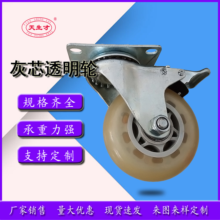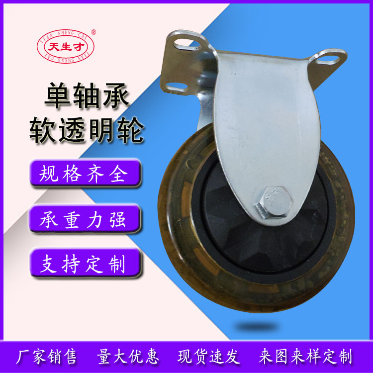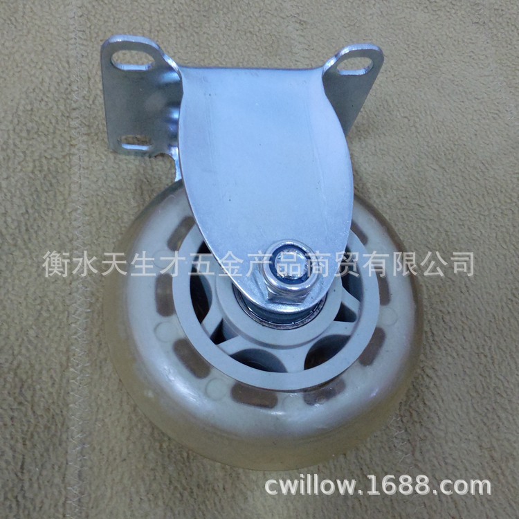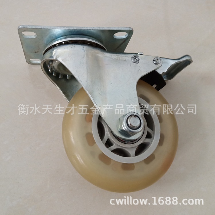 名称:重型工业黄芯黑皮定向脚轮。 底座板厚度:5mm。 型号:重型脚轮系列(5mm)。 材料:塑芯聚氨酯(PVC)。 支架:镀锌支架。 转向:定向(固定式)。 |