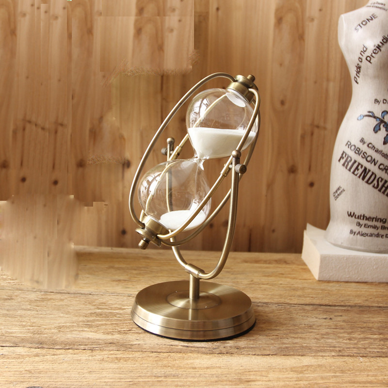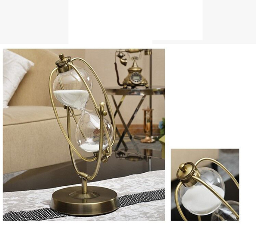 金属回転地球儀砂時計金属創意置物家庭プレゼント流砂工芸品装飾品