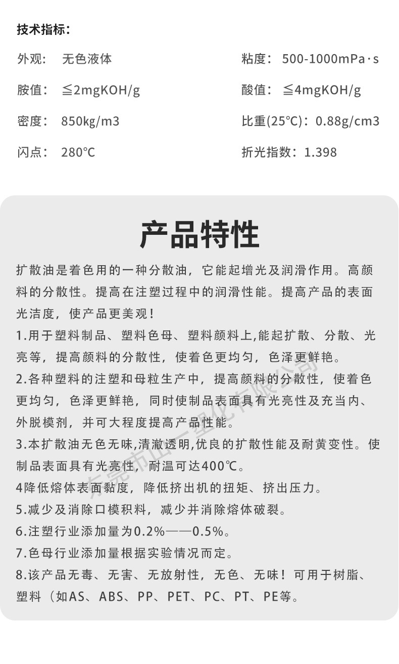 康锦塑料颜料色粉扩散油拌料扩散油TSF-96-1000润滑分散油分散剂