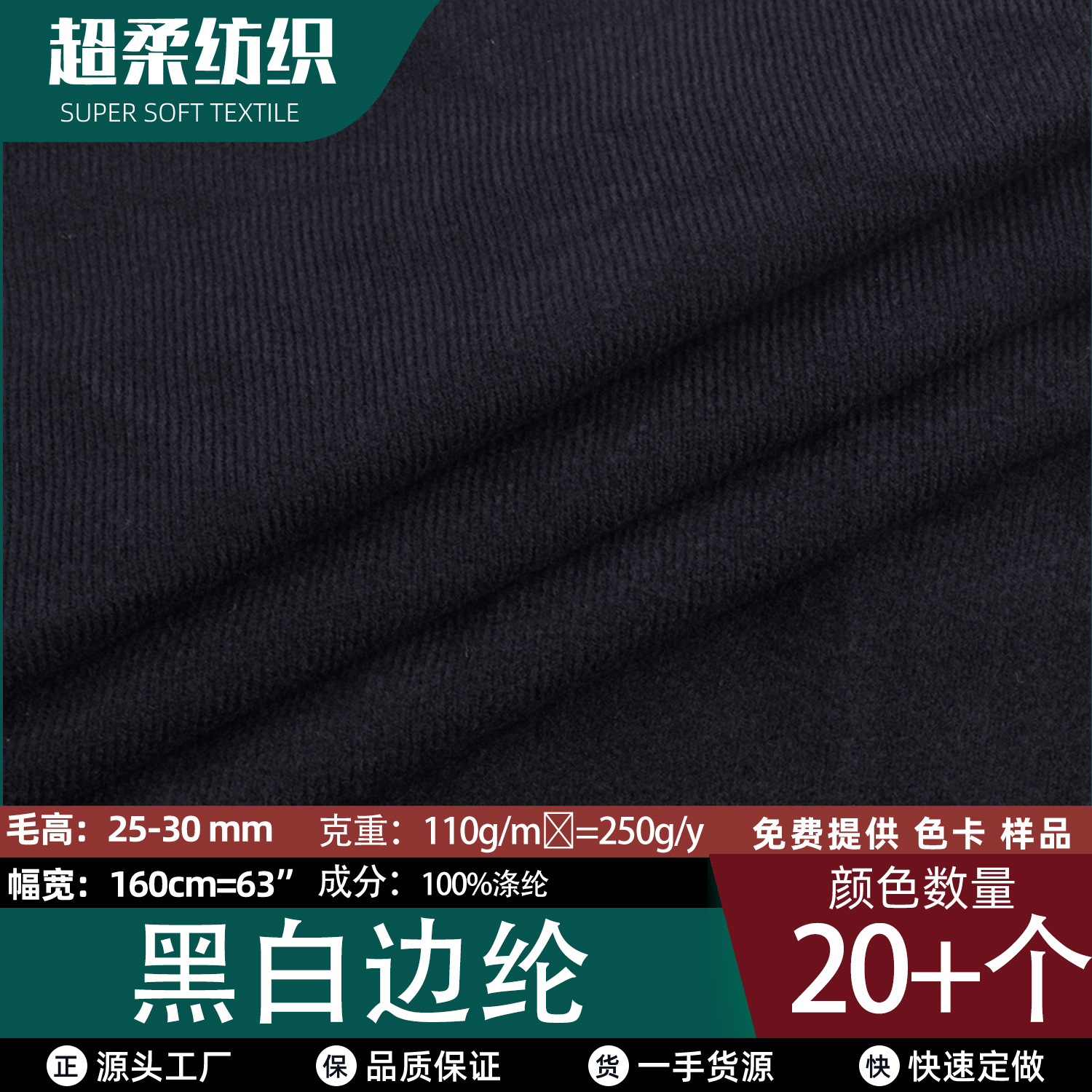 厂家现货 黑白边纶布 天鹅绒 玩具圈圈绒 包边家纺箱包布偶起拉毛