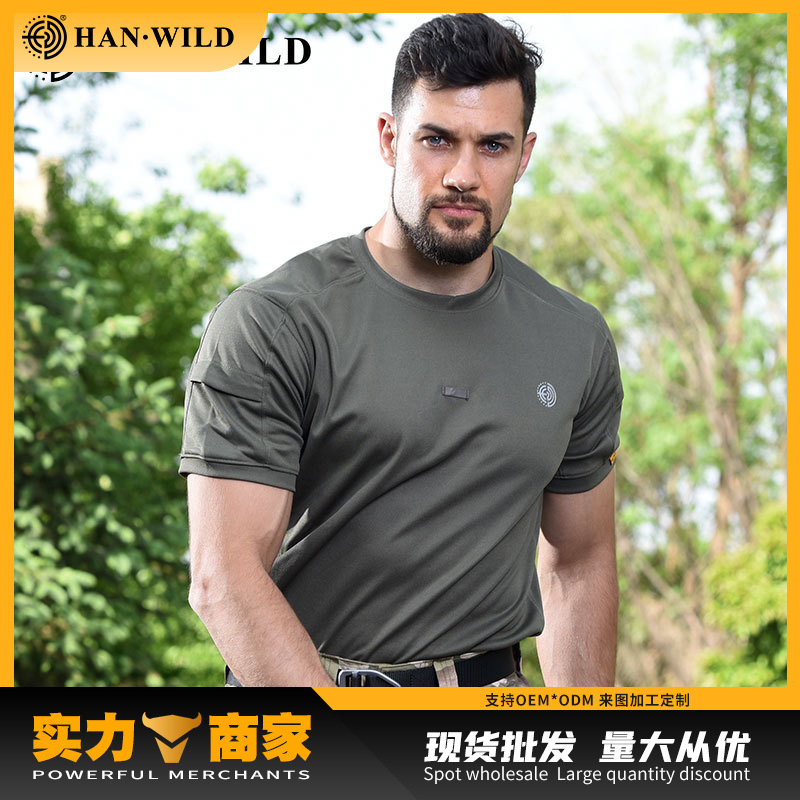 ハンイェ アウトドア卸売トレーニングウェア 夏用速乾ラウンドネック アウトドアTシャツ 半袖 メンズ タクティカルトレーニング コンバットTシャツ