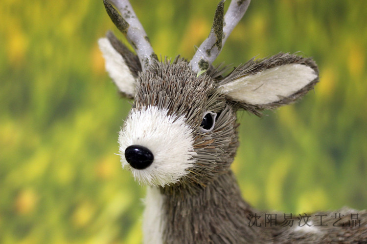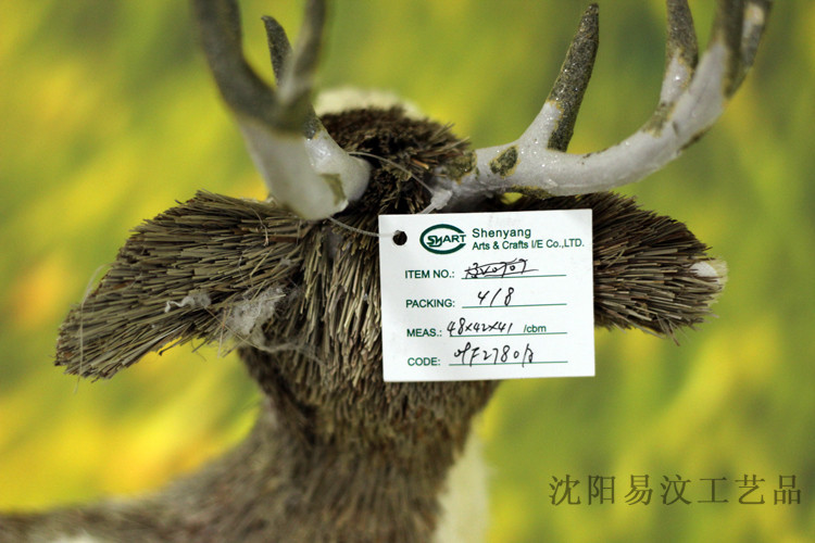产品名称:手工杨胡草梅花驯鹿 产品编号:13V0707A 产品用途:圣诞节摆件、场景布置、节庆摆件、家居装饰 产品规格:25*12*38CM 产品包装:4/8每件
