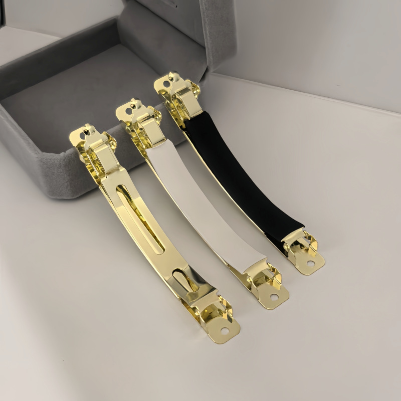 ロゴなしの8CMツーピースステンレススチール製スプリングクリップ、錆びない、ブランドリボンボトムクリップ、軽くて高級感のあるヘアアクセサリー