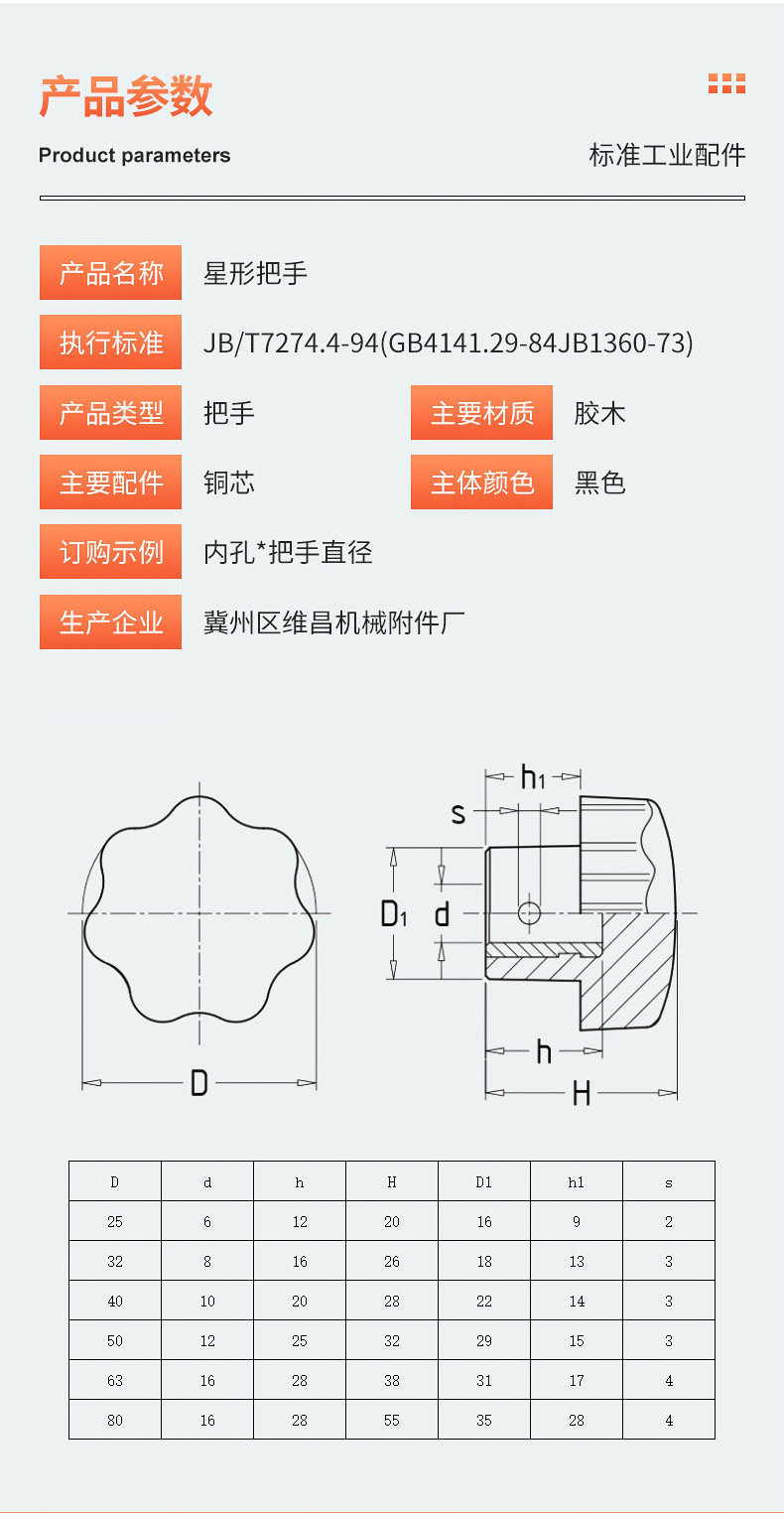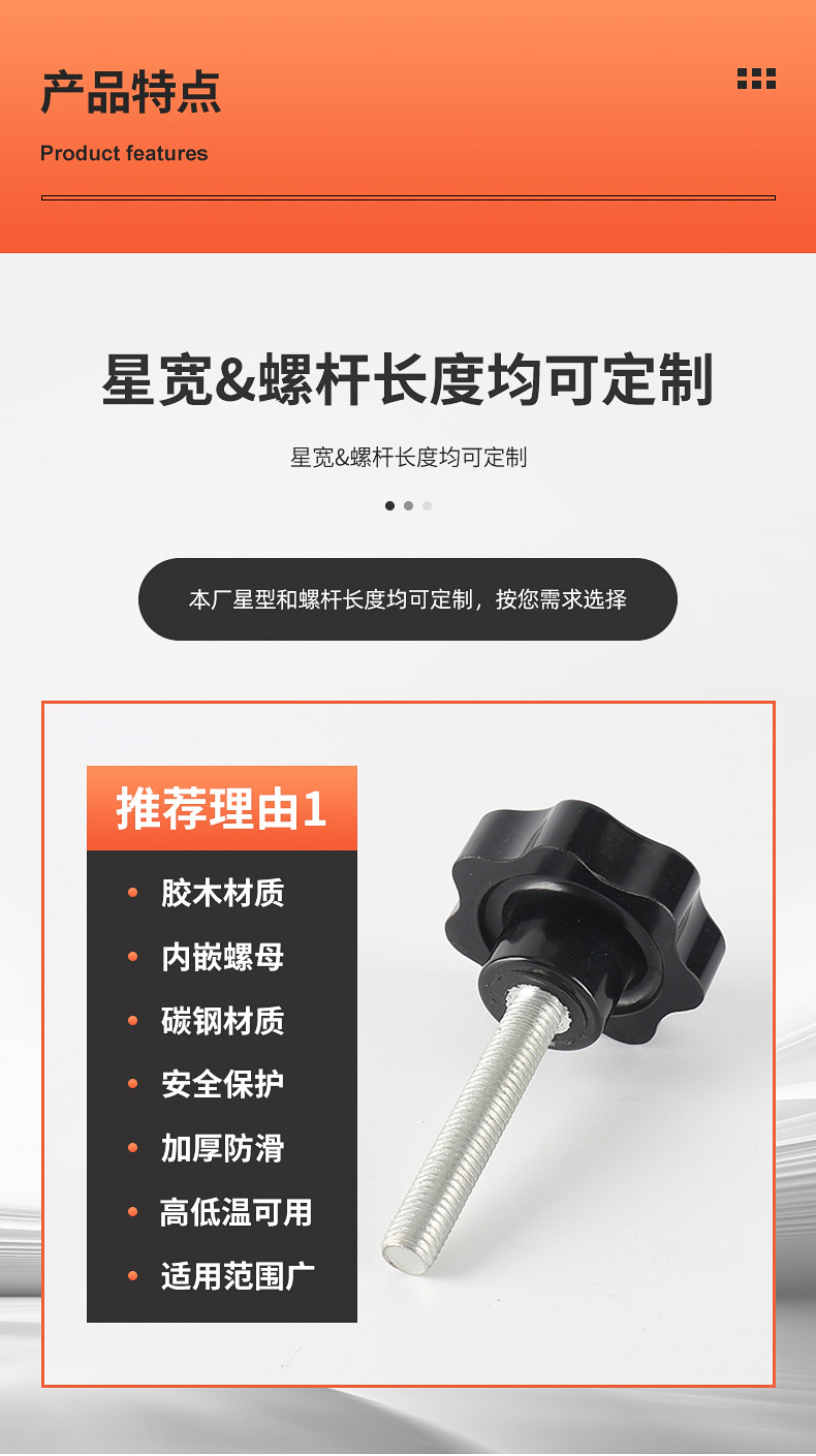 北護順調牌胶木七星取っ手七角梅花手輪ねじ星型手輪滑り止め耐久性