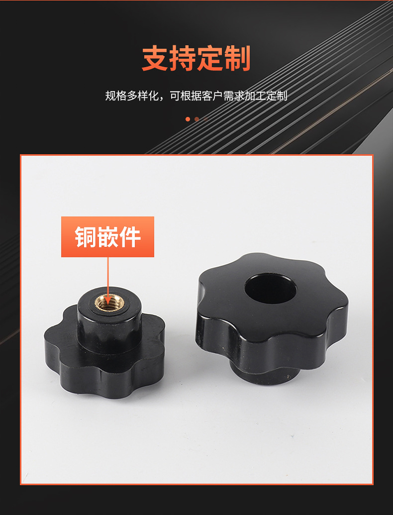 通孔七星ハンドルゴム木星型取っ手梅の取っ手ねじ穴あき手摺ナット銅芯M4-M16