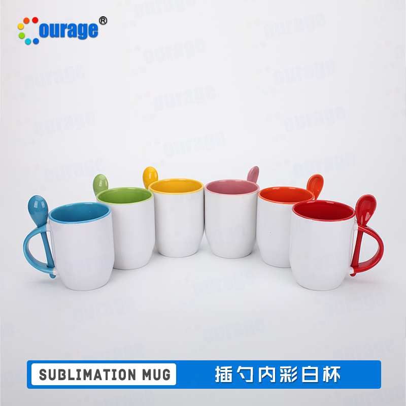 熱転写プリント内カラースプーン付きカップメーカー卸売りブランクコーティングマグカップ昇華コーティングセラミックカップスプーン付き