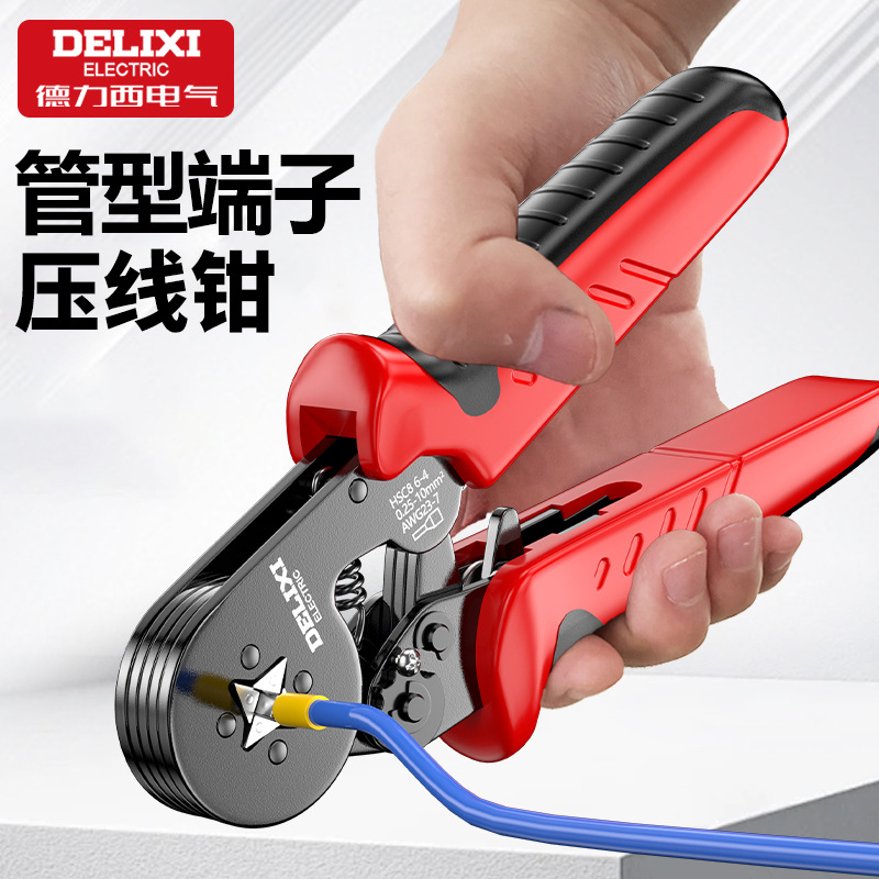 德力西电气压线钳6-4管型针型段子压接钳电工接线冷压端子压线钳