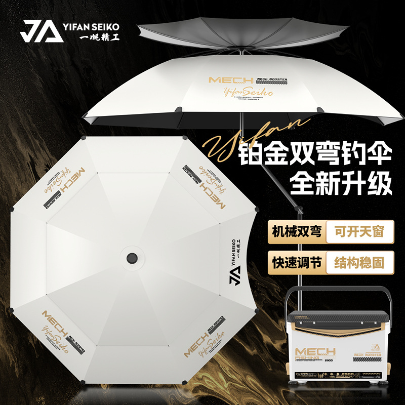 一帆精工新款2.4米钓鱼遮阳伞拐杖双弯机械臂多向调节防雨钓伞