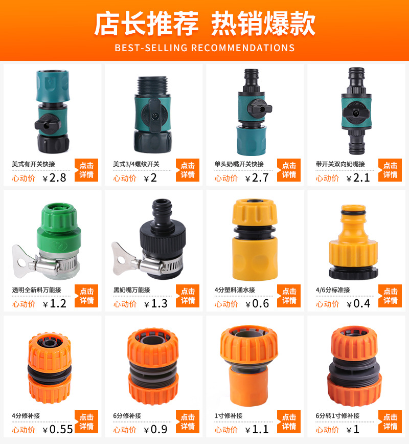 メーカー直販プラスチック6分クイック継手プラスチック水道管通水継手新材料家庭用水鉄砲継手