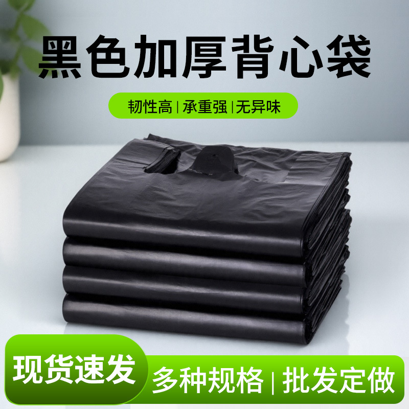 黒色のビニール袋、厚手の家庭用、商業用、ショッピング用、便利な袋、梱包用、卸売、ベスト型袋