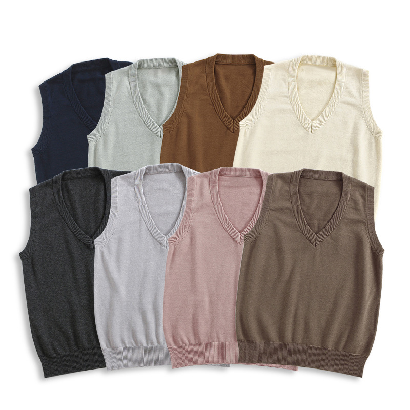 現物JK制服純色ベスト英倫学院風vネックノースリーブニットプルオーバー女性セーター卸売り