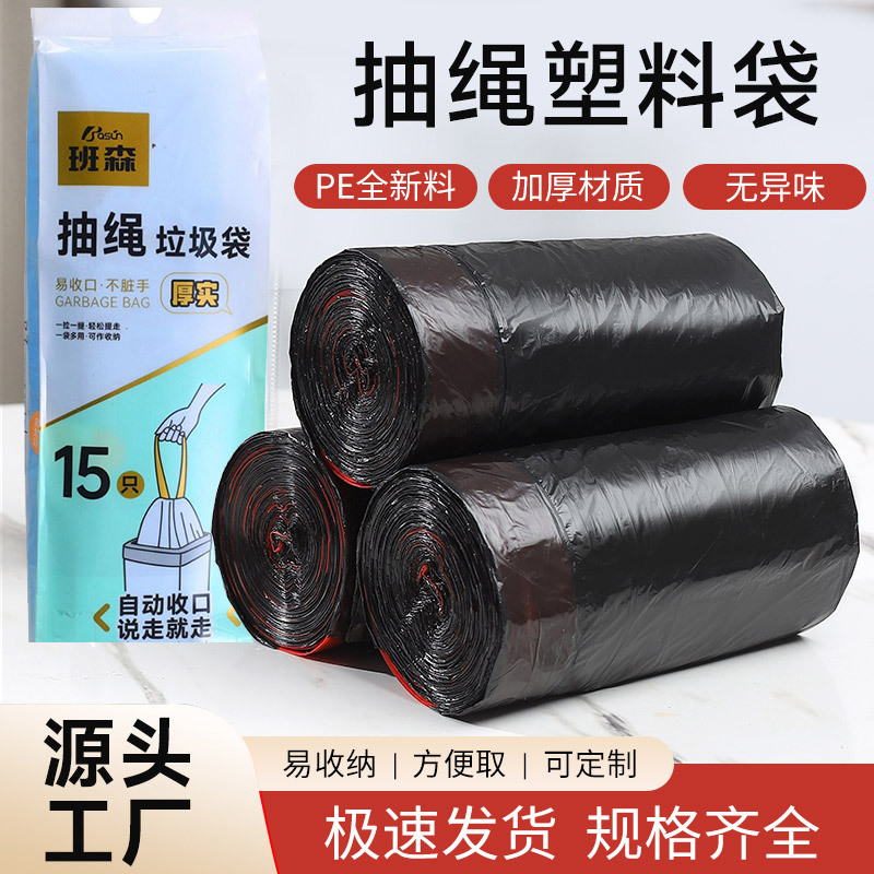 现货抽绳垃圾袋批发加厚自动收口家用便携式塑料袋客厅厨房卫生间