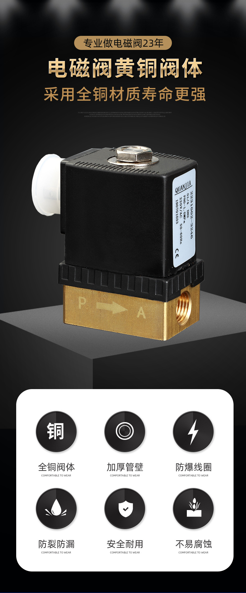 BONDON QUANJIA Quanjia 2 ポジション 3 ウェイ直動電磁弁真鍮電磁弁