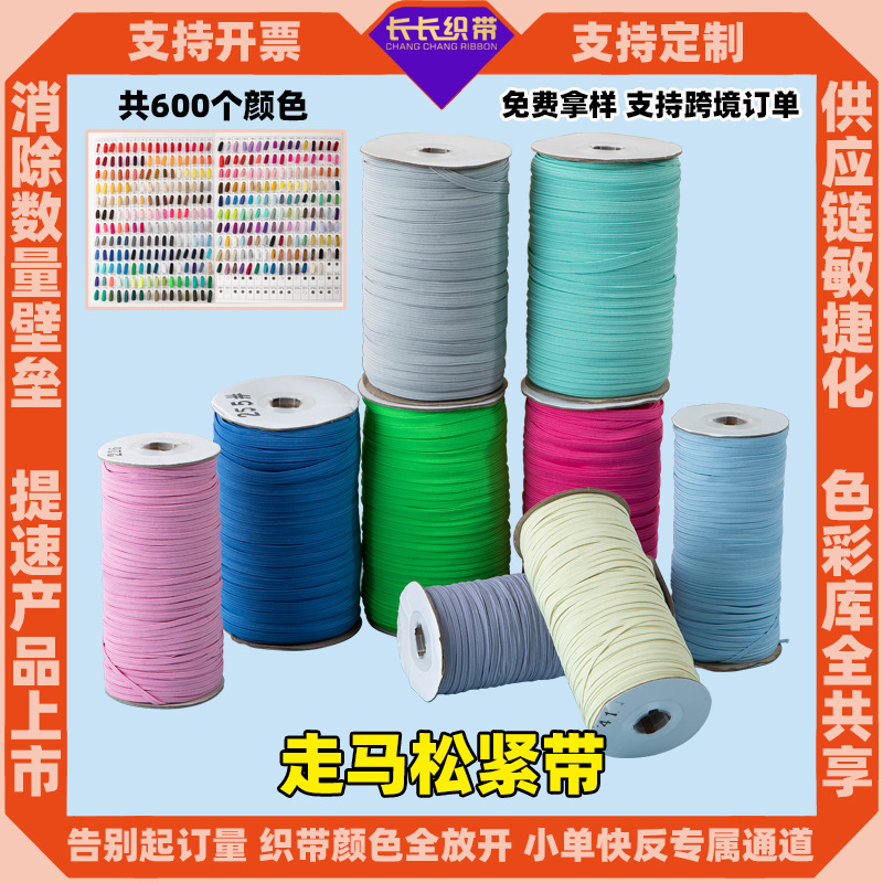 钩边松紧带,0.3-35cm不同规格提供,有黑、白、各种彩色,用于服装辅料、