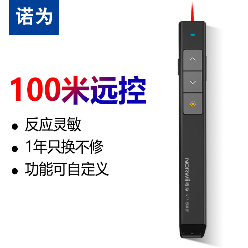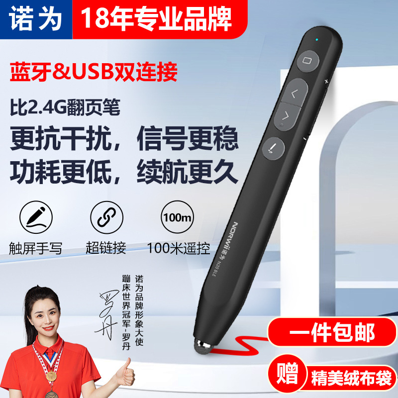 为保证您购买到诺为原装正品激光翻页笔,请留意外壳上方的防伪标贴。